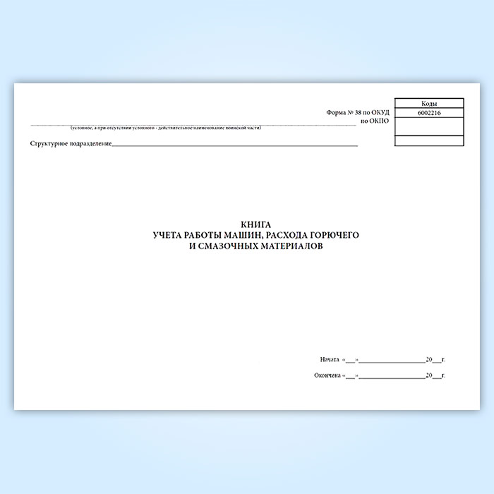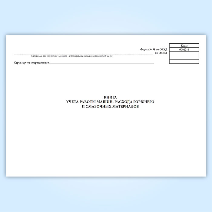 Книга учета работы машин, расхода горючего и смазочных материалов (форма 38, ОКУД 6002216) в Ачинске купить