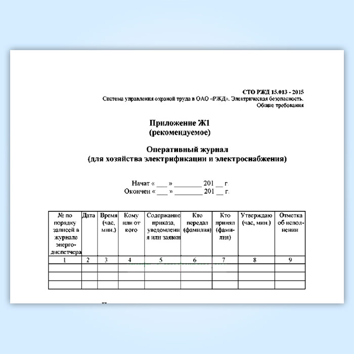 Оперативный журнал (для хозяйства электрификации и электроснабжения) (СТО РЖД 15.013-2015) в Ачинске купить