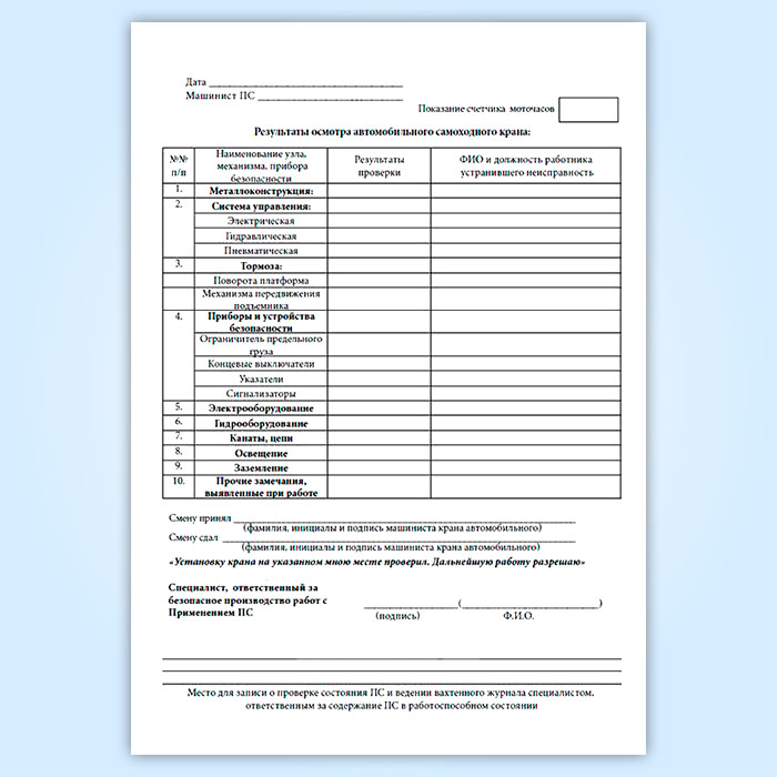 Вахтенный журнал машиниста автомобильного стрелового крана в Ачинске купить