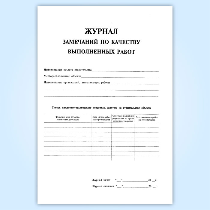 Журнал замечаний по качеству выполненных работ в Ачинске купить