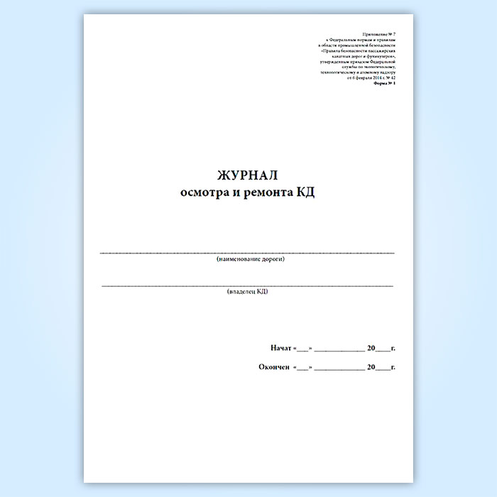 Журнал осмотра и ремонта канатной дороги. Несущий канат (форма № 1) в Ачинске купить