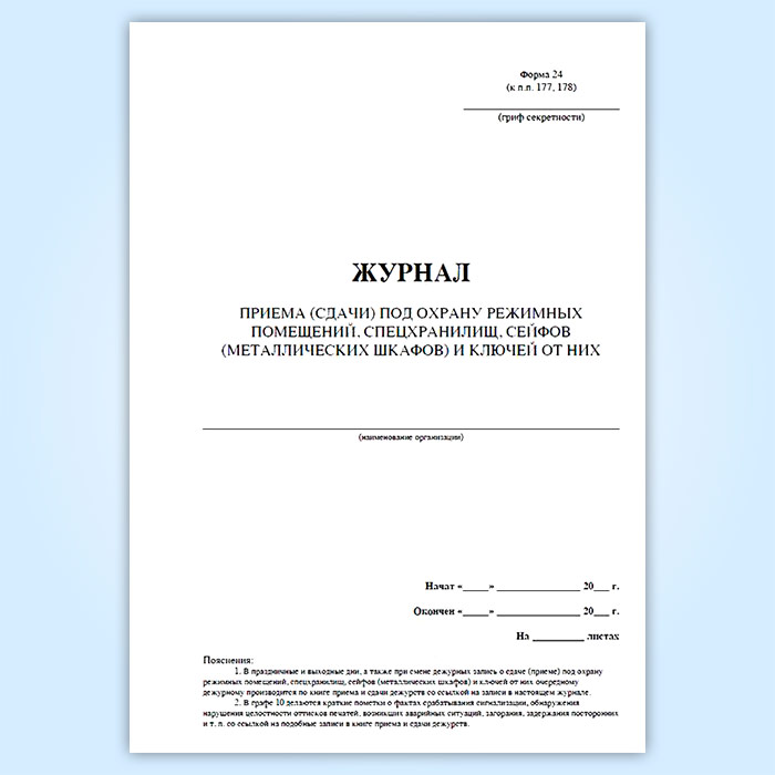 Журнал приема (сдачи) под охрану режимных помещений, спецхранилищ, сейфов (металлических шкафов) и ключей от них в Ачинске купить