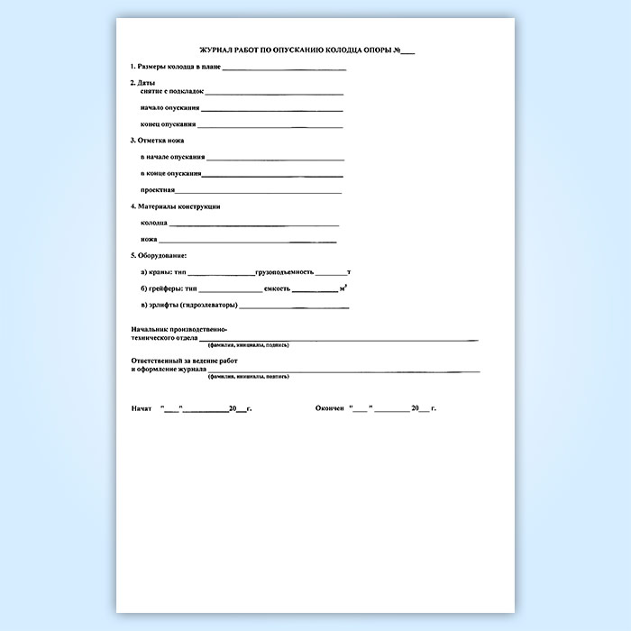 Журнал работ по опусканию колодца опоры в Ачинске купить