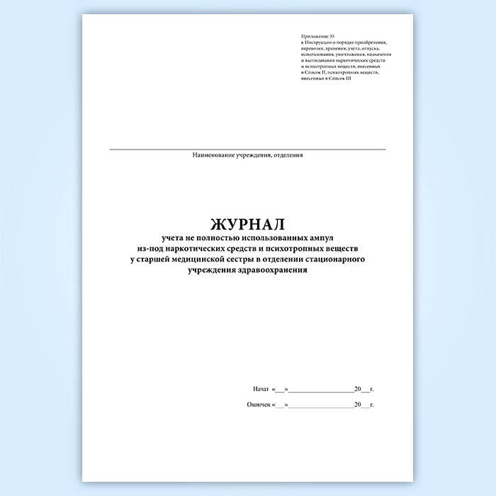 Журнал учета не полностью использованных ампул из-под наркотических средств и психотропных веществ у старшей медицинской сестры в отделении стационарного учреждения здравоохранения в Ачинске купить