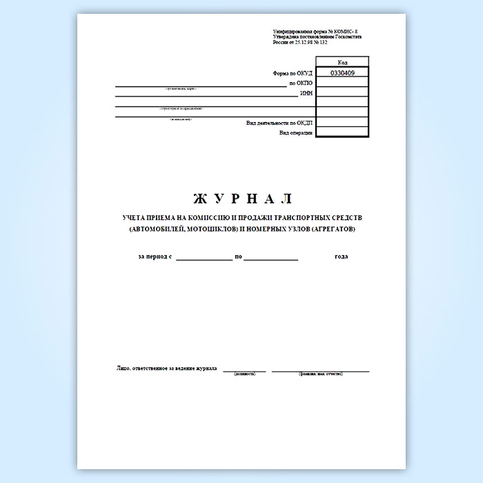 Журнал учета приема на комиссию и продажи транспортных средств (автомобилей, мотоциклов) и номерных узлов (агрегатов) (форма № КОМИС-8) в Ачинске купить