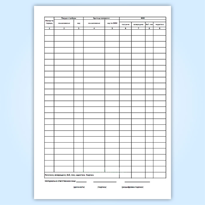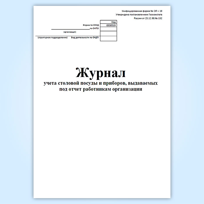 Журнал учета столовой посуды и приборов, выдаваемых под отчет работникам организации (форма № ОП-19) в Ачинске купить