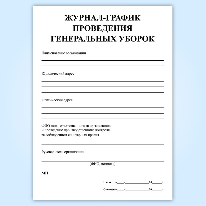 Журнал-график проведения генеральных уборок в Ачинске купить