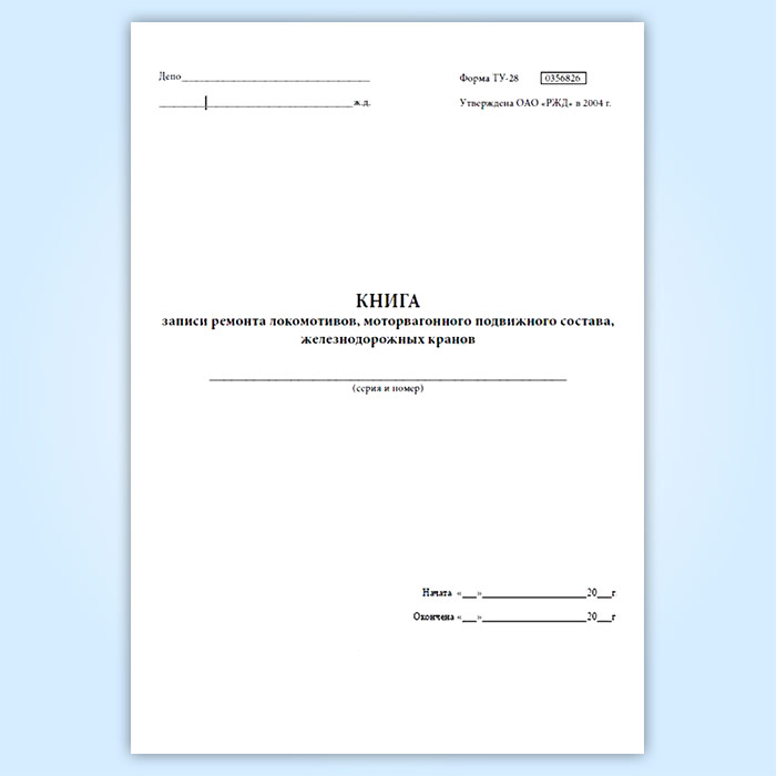 Книга записи ремонта локомотивов, моторвагонного подвижного состава железнодорожных кранов (ТУ-28) в Ачинске купить