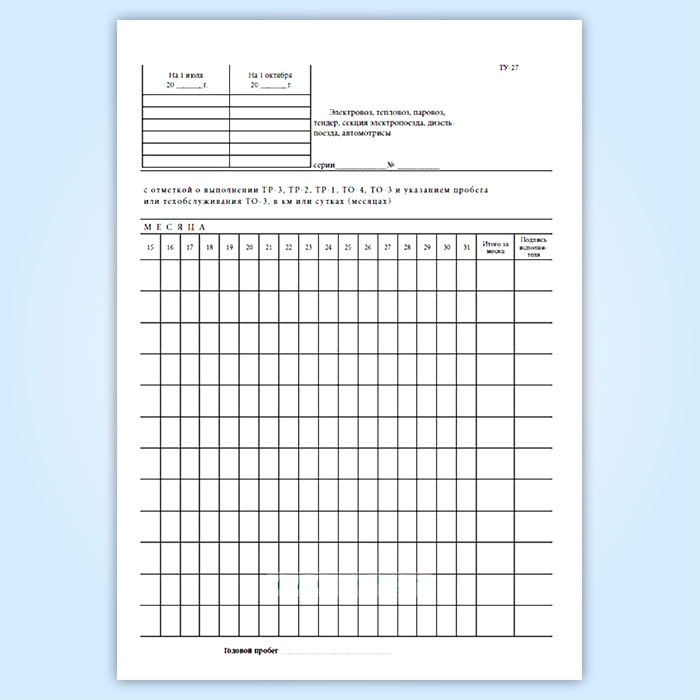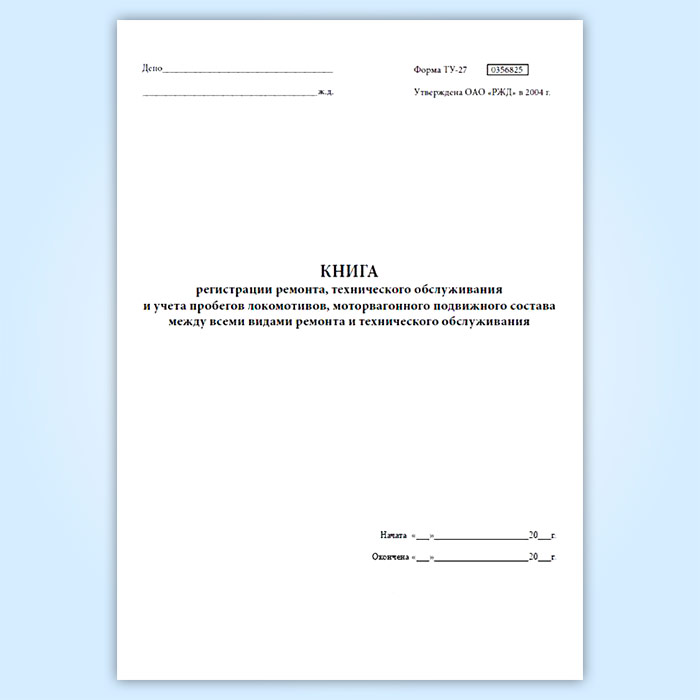 Книга регистрации ремонта, технического обслуживания и учета пробегов локомотивов, моторвагонного подвижного состава между всеми видами ремонта и технического обслуживания (форма ТУ-27) в Ачинске купить