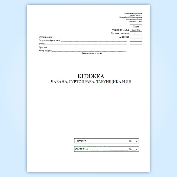 Книжка чабана, гуртоправа, табунщика и др. (форма № СП-50) в Ачинске купить