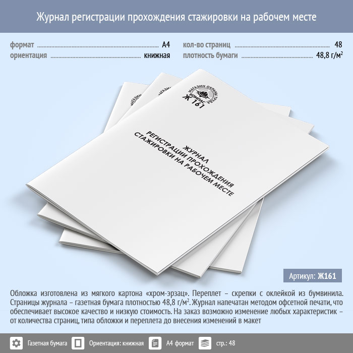 Журнал регистрации прохождения стажировки на рабочем месте (48 стр., Ж161) в Ачинске купить