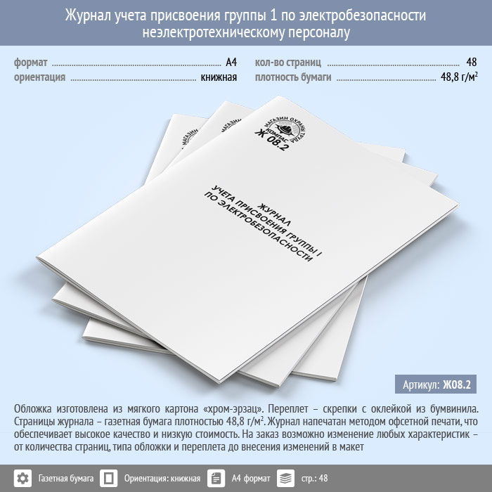 Журнал учета присвоения группы 1 по электробезопасности неэлектротехническому персоналу (48 стр., Ж08.2) в Ачинске купить