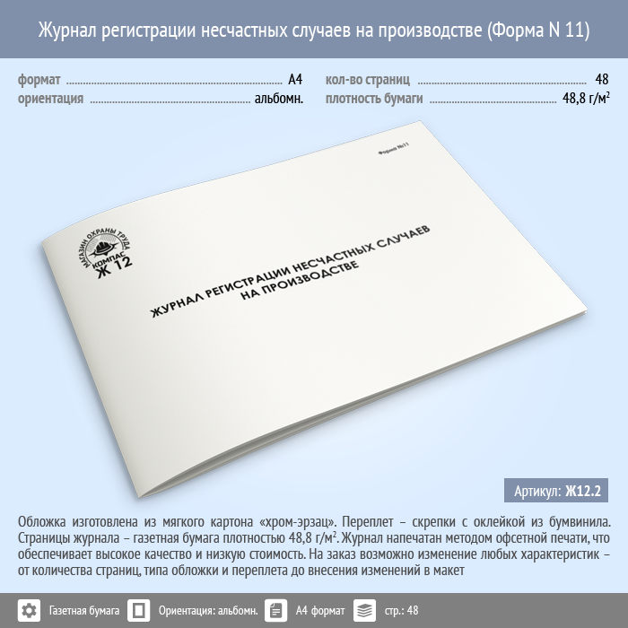 Журнал регистрации несчастных случаев на производстве (Форма N 11) (48 стр., Ж12.2) в Ачинске купить