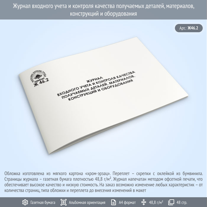 Журнал входного учета и контроля качества получаемых деталей, материалов, конструкций и оборудования (Ж46.2, 48 стр.) в Ачинске купить