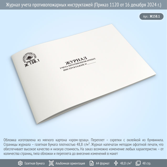 Журнал учета противопожарных инструктажей (Приказ 1120 от 16 декабря 2024 г.) (48 стр., Ж158.1) в Ачинске купить