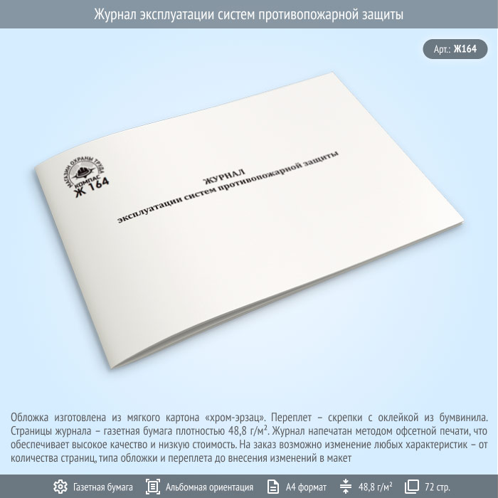 Журнал эксплуатации систем противопожарной защиты (72 стр., Ж164) в Ачинске купить