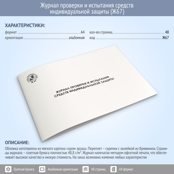 Журнал проверки и испытания средств индивидуальной защиты (48 стр., Ж67) в Ачинске купить
