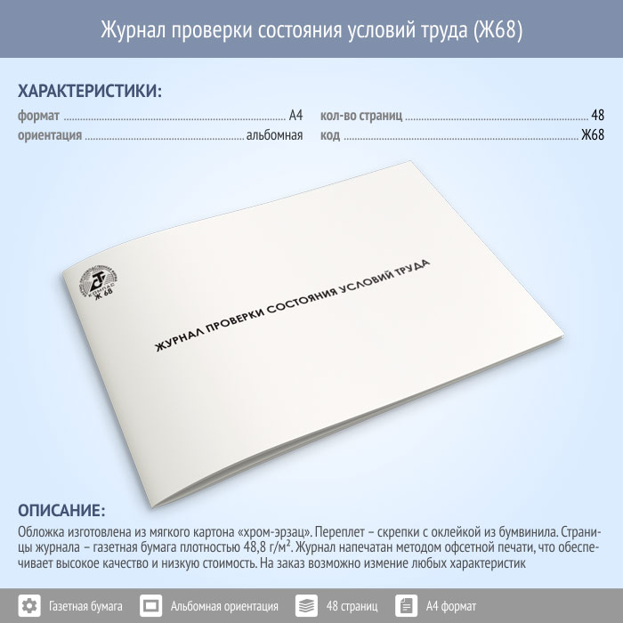 Журнал проверки состояния условий труда (48 стр., Ж68) в Ачинске купить