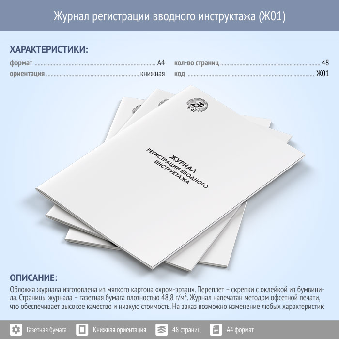 Журнал регистрации вводного инструктажа (48 стр., Ж01) в Ачинске купить