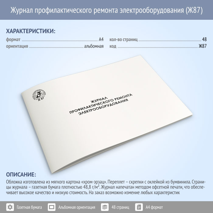 Журнал профилактического ремонта электрооборудования (48 стр., Ж87) в Ачинске купить
