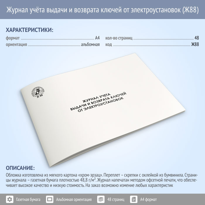 Журнал учета выдачи и возврата ключей от электроустановок (48 стр., Ж88) в Ачинске купить