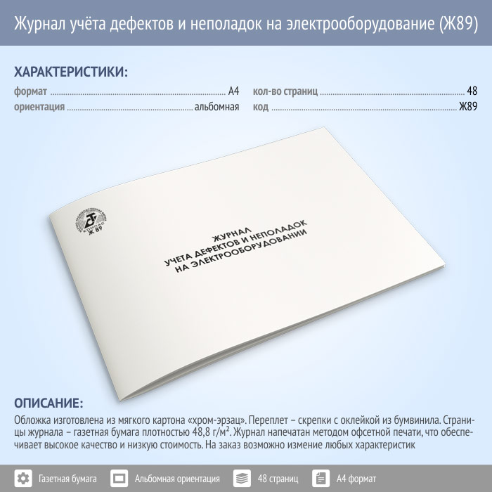 Журнал учета дефектов и неполадок электрооборудования (48 стр., Ж89) в Ачинске купить