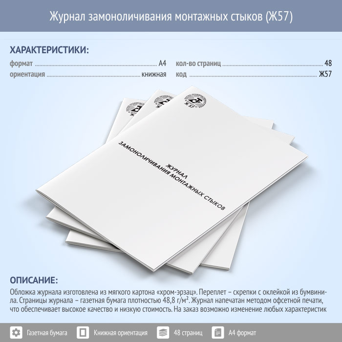 Журнал замоноличивания монтажных стыков (48 стр., Ж57) в Ачинске купить