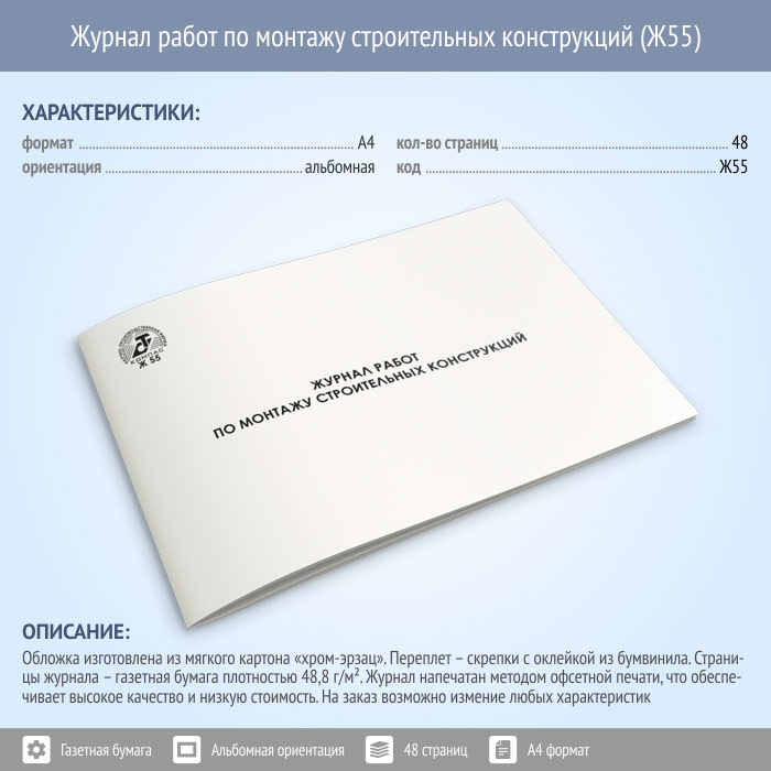 Журнал работ по монтажу строительных конструкций (48 стр., Ж55) в Ачинске купить