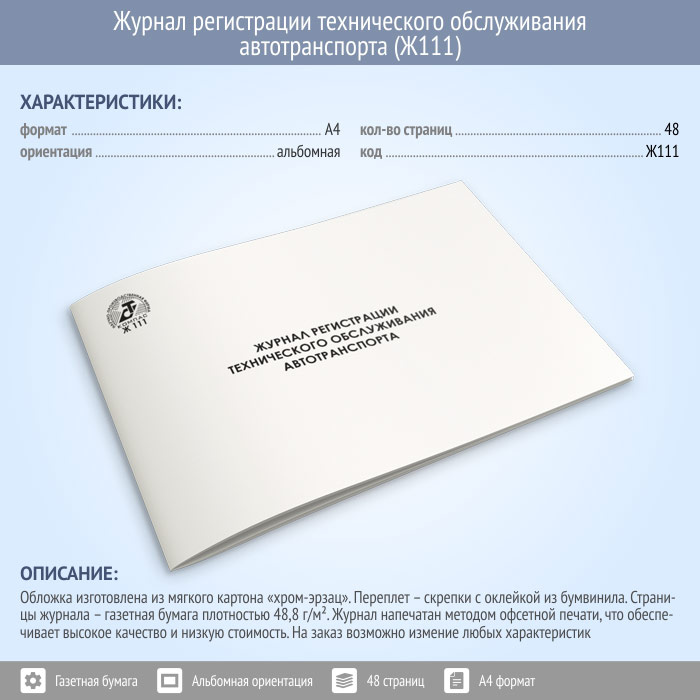 Журнал регистрации технического обслуживания автотранспорта (48 стр., Ж111) в Ачинске купить