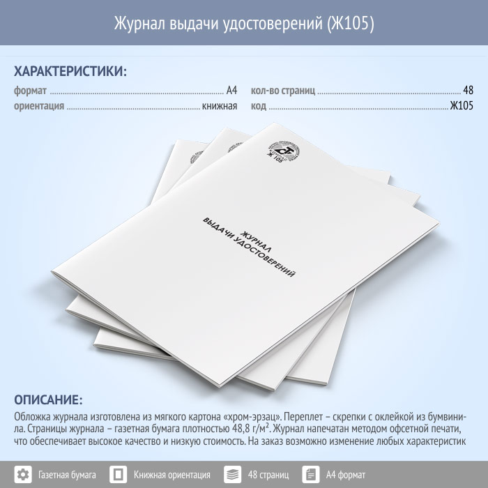 Журнал выдачи удостоверений (48 стр., Ж105) в Ачинске купить