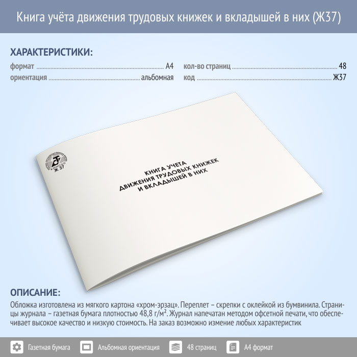 Книга учета движения трудовых книжек и вкладышей в них (48 стр., Ж37) в Ачинске купить