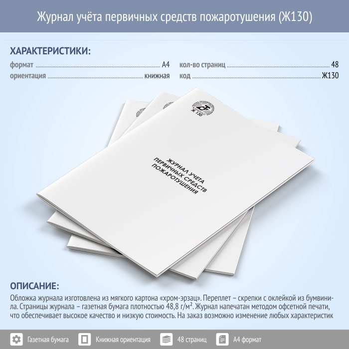 Журнал учета первичных средств пожаротушения (48 стр., Ж130) в Ачинске купить