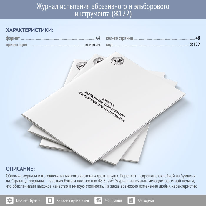 Журнал испытания абразивного и эльборового инструмента (48 стр., Ж122) в Ачинске купить