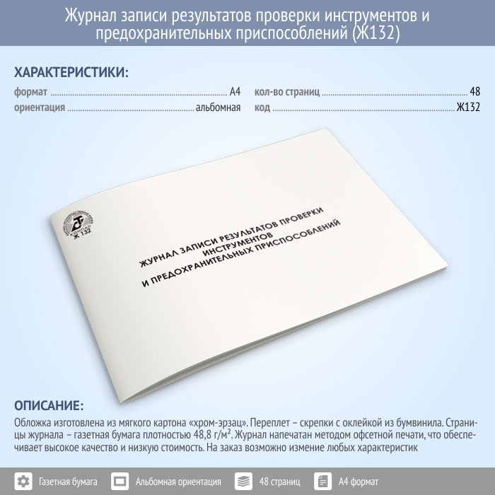 Журнал записи результатов проверки инструментов и предохранительных приспособлений (48 стр., Ж132) в Ачинске купить