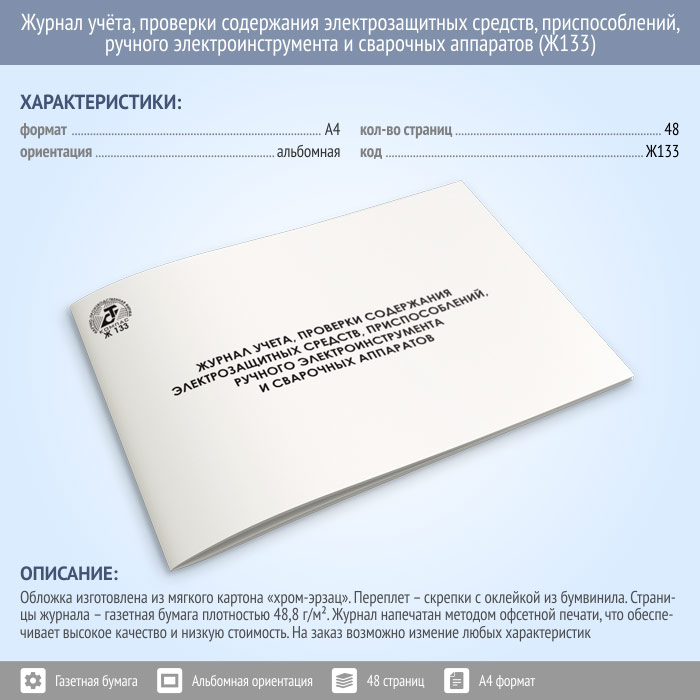 Журнал учета проверки и содержания электрозащитных средств, приспособлений, ручного электроинструмента и сварочных аппаратов (48 стр., Ж133) в Ачинске купить