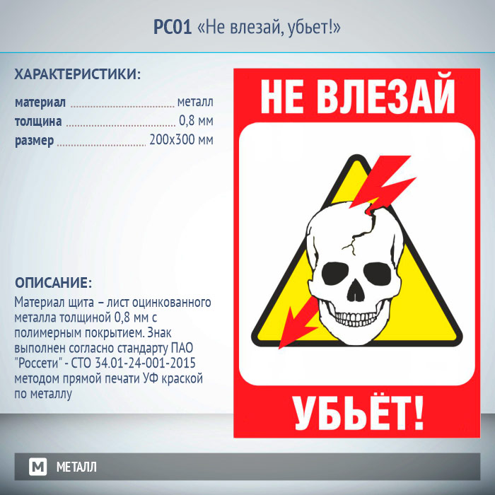 Знак «Не влезай, убьет!», РС01 (металл, 200х300 мм) в Ачинске купить