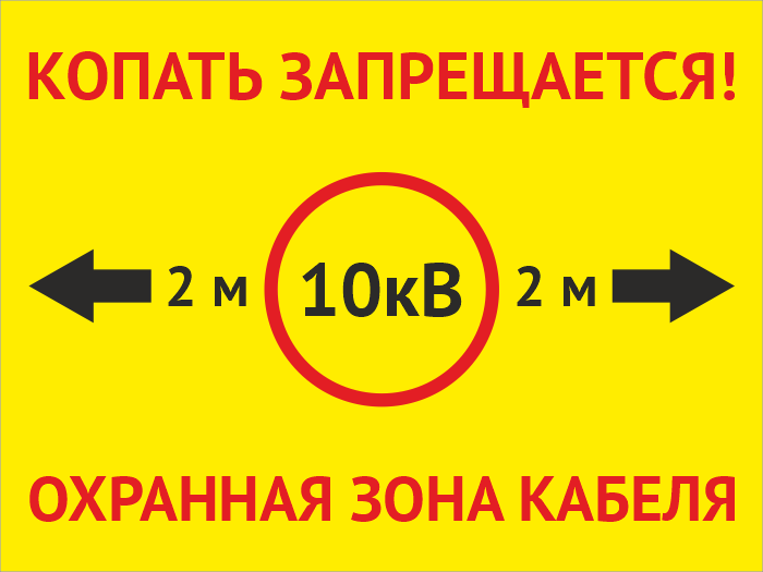 Табличка «Охранная зона кабеля 10 кВ. Копать запрещается», OZK-01 (пластик 2 мм, 400х300 мм) в Ачинске купить