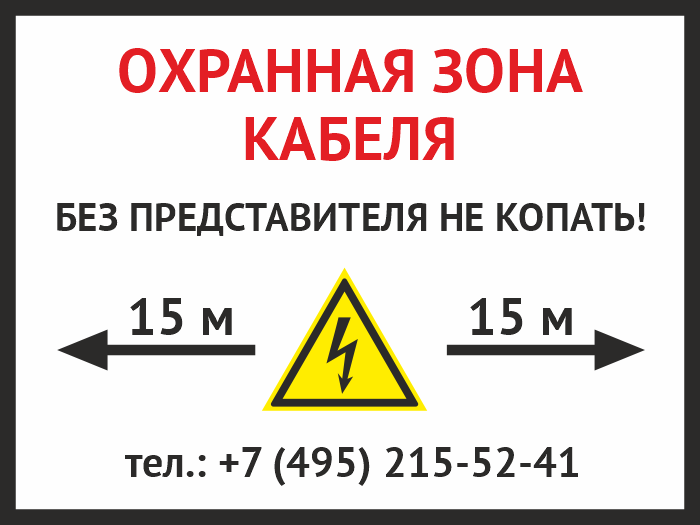 Знак «Охранная зона кабеля. Без представителей не копать», OZK-02 (металл, 400х300 мм) в Ачинске купить