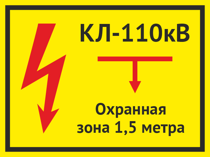 Табличка «КЛ 110 кВ, охранная зона 1.5 метра», OZK-08 (пластик 2 мм, 400х300 мм) в Ачинске купить