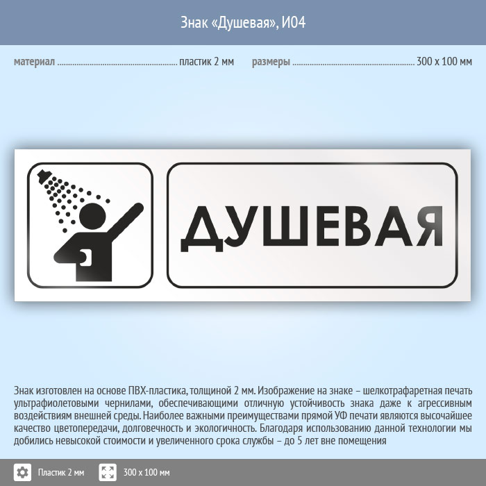 Знак «Душевая», И04 (пластик, 300х100 мм) в Ачинске купить