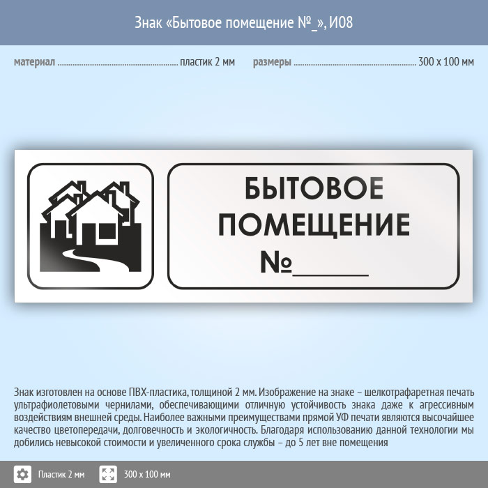 Знак «Бытовое помещение №_», И08 (пластик, 300х100 мм) в Ачинске купить