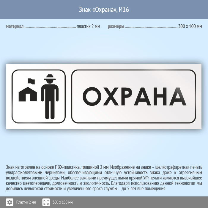 Знак «Охрана», И16 (пластик, 300х100 мм) в Ачинске купить
