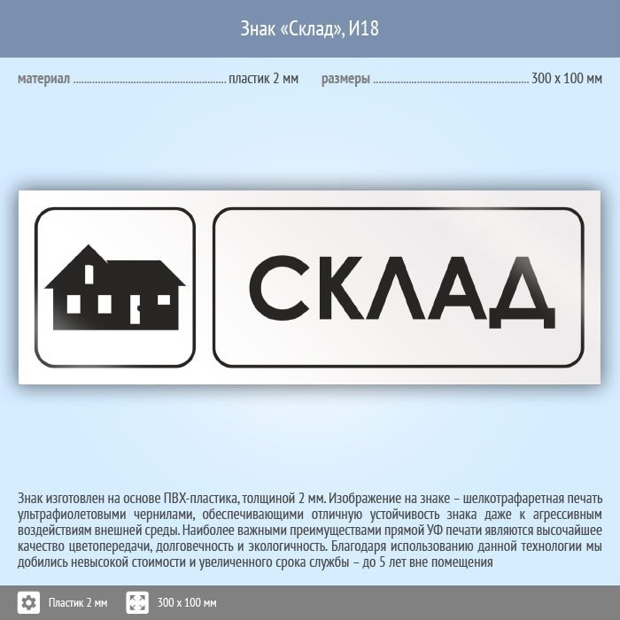 Знак «Склад», И18 (пластик, 300х100 мм) в Ачинске купить
