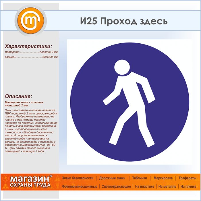 Знак «Проход здесь», И25 (пластик, 300х300 мм) в Ачинске купить