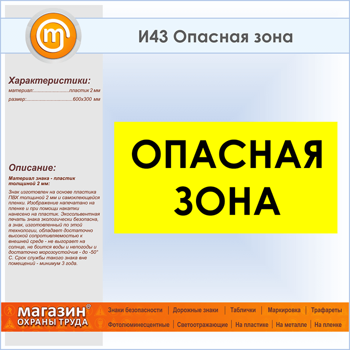 Знак «Опасная зона», И43 (пластик, 600х300 мм) в Ачинске купить