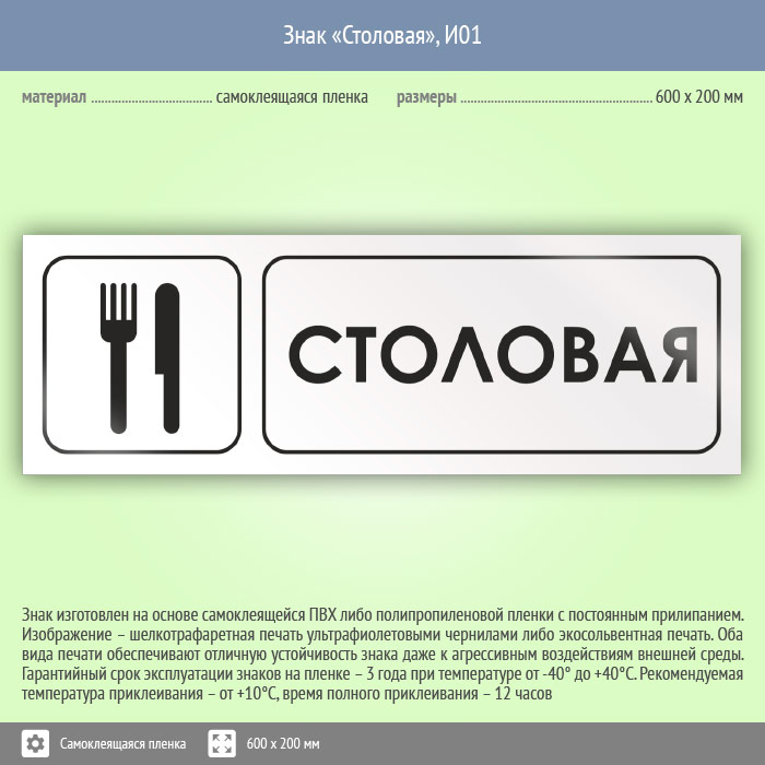 Знак «Столовая», И01 (пленка, 600х200 мм) в Ачинске купить
