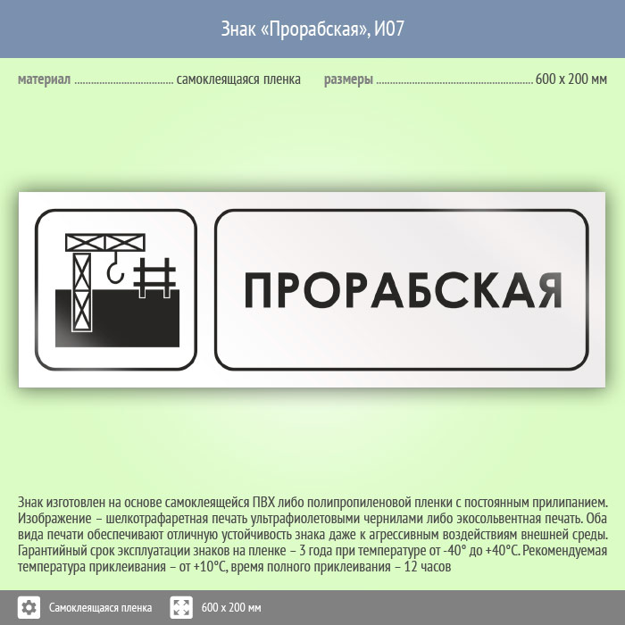 Знак «Прорабская», И07 (пленка, 600х200 мм) в Ачинске купить