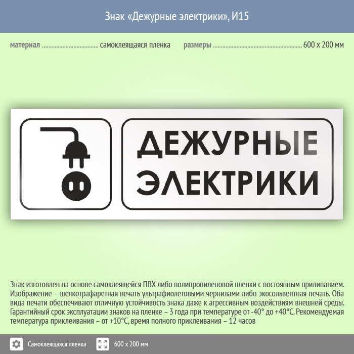 Знак «Дежурные электрики», И15 (пленка, 600х200 мм) в Ачинске купить
