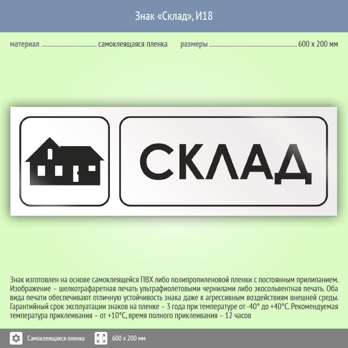 Знак «Склад», И18 (пленка, 600х200 мм) в Ачинске купить