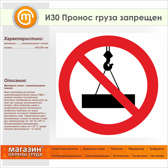 Знак «Пронос груза запрещен», И30 (пленка, 500х500 мм) в Ачинске купить